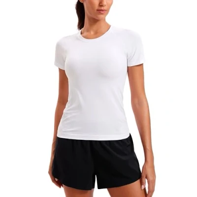 CRZ YOGA Women's Seamless Sports T Shirts Breathable Short Sleeve Top Active Gym Running Fitness Shirt White 14