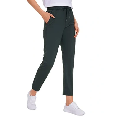 CRZ YOGA Women's Stretch Lounge Sweatpants 27.5" Travel Trousers Ankle Drawstring 7/8 Athletic Training Tracksuit Bottoms Melanite 18