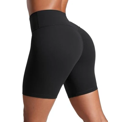 CRZ YOGA Womens Butterlift Butt Scrunch Booty Shorts No Front Seam High Waist Workout Leggings Gym Running Biker 6" Black 10
