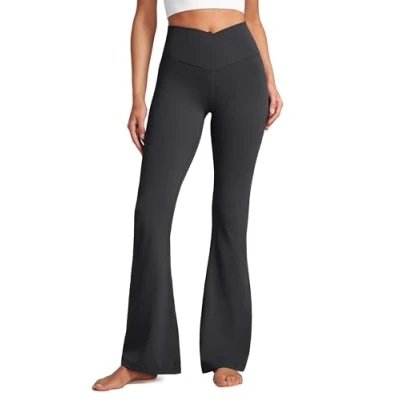 CRZ Yoga Womens Butterluxe Crossover Flared Leggings High Waist Bootleg Workout Stretch Bootcut Pants 29" Mysterious Grey 10
