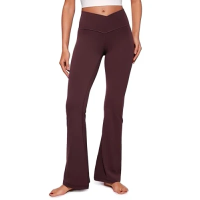 CRZ Yoga Womens Butterluxe Crossover Flared Leggings High Waist Bootleg Workout Stretch Bootcut Pants 29" Ripe Plum 12