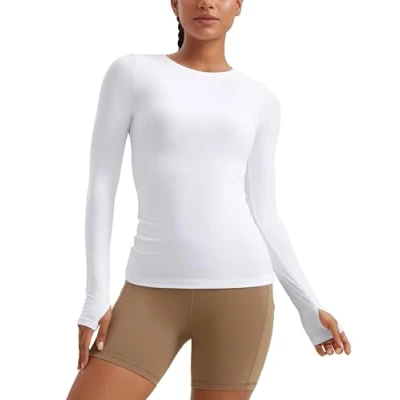 Designed for workouts and casual Light and soft to feel like a cloud. Stretchy, breathable, moisture wicking and dries fast Tight fit, hip length High crew neck in classic style never disappoints you in terms of comfort and look Thumb holes prevent sleeves from shifting to allow free movement