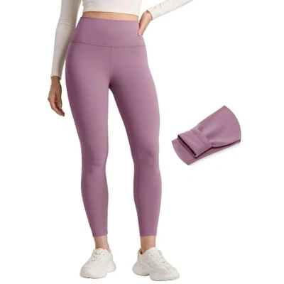 CRZ Yoga Womens Fleece Lined Leggings 25" Matte Thermal Winter Warm Thick Pants High Waist Casual Lounge Tights Trousers Light Lavender 12