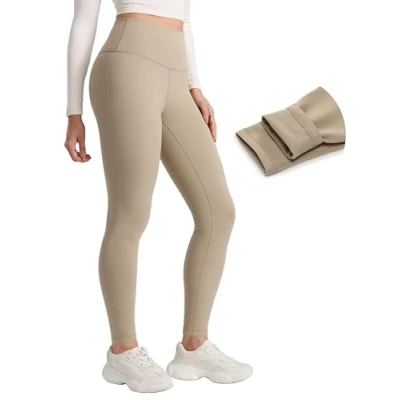 CRZ Yoga Womens Fleece Lined Leggings 28" Matte Thermal Winter Warm Thick Pants High Waist Casual Lounge Full Length Trousers Oak 10