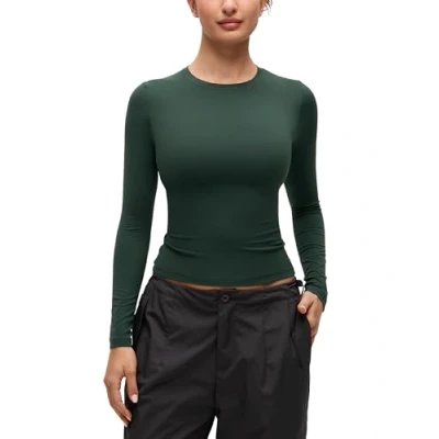 CRZ YOGA Womens Softembrace Long Sleeve Soft Crew Neck Shirts Basic Stretchy Tight T Casual Going Out Fall Fitted Tops Legend Green 14