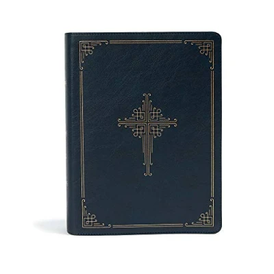CSB Ancient Faith Study Bible, Navy LeatherTouch: Black Letter, Church Fathers, Notes and Commentary, Ribbon Marker, Sewn Binding, Easy To Read Bible Serif Type