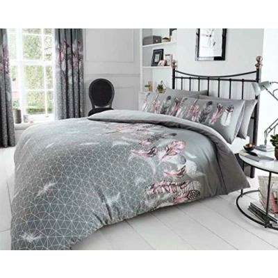 Single Duvet Set With One Matching Pillowcase (137 x 200cms) / Double Duvet Set With Two Matching Pillowcases (200 x 200cms) King Duvet Set With Two Matching Pillowcases (220 x 230cms) / Super King Duvet Set With Two Matching Pillowcases (220 x 260cms) Matching Curtain Pair Sold Separately, Curtains are Pleat Top and Only Available in 66" Width and 72" Drop Size. Luxurious Feathers Dream Cather Pattern Bedding Sets Fully Reversible Quilt Cover Sets Available in Grey, Pink, Purple, White and Yellow Colours. Soft Cotton Rich All Seasons Beautiful Dream Cather Feathers Pattern Printed Modern Style Bedding Sets Hypoallergenic / Machine Washable / Tumble Dry
