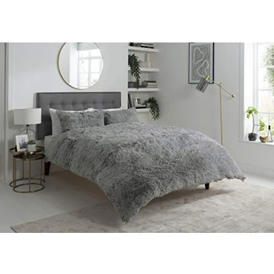CT Hug and Snug Luxury Fluffy Fur Fleece Duvet Cover Sets Super Soft Warm Cosy Bedding (Grey Silver, Double Set)