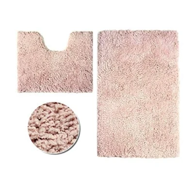 CT Luxury Zero Twist Super Soft 2pc Bath & Pedestal Mat Sets Non Slip Water Absorbent Washable Bathroom Rugs (Blush Pink)