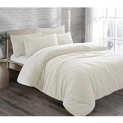 CT New Teddy Sherpa Fleece Luxurious Duvet Cover Sets Quilt Super Soft Warm Cosy Bear Bedding (Cream, Double Set)