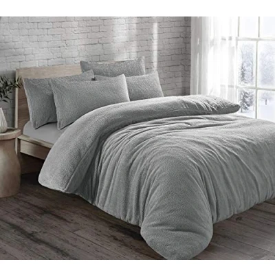 CT New Teddy Sherpa Fleece Luxurious Duvet Cover Sets Quilt Super Soft Warm Cosy Bear Bedding (Silver, King Set)