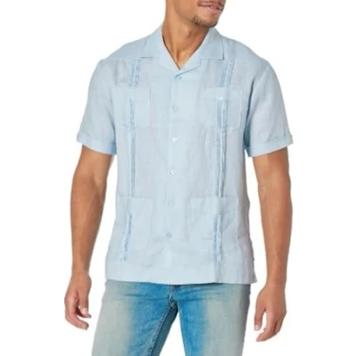 Cubavera Men's 100% Linen Four Pocket Short Sleeve Guayabera (Size Small 5x) Button Down Shirt, Cashmere Blue, XL