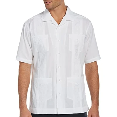 CUBAN GUAYABERA DESIGN: This short-sleeve guayabera for men features four button-through front pockets, and vertical pintucks combined with our classic tonal embroidery, capturing the guayabera shirt style perfectly with a modern twist. QUALITY & DURABILITY: Made with lightweight & breathable plain weave fabric that weaves in a tight criss-cross patterning for extra durability, so you can get the most out of this men's guayabera shirt without worrying about wear and tear. COMFORTABLE FIT: This embroidered shirt comes in a comfortable fit with a relaxed cut that's fuller through the chest and waist. It is designed with side vents and cuffed sleeves with buttons for a stylish look whether you’re out dancing or chilling poolside. MACHINE WASHABLE: This men's Cuban guayabera shirt is machine washable, just put it in the washing machine and with light ironing, it will be ready for you to wear again in no time. Add effortless style and all-day comfort to any outfit with this shirt. AVAILABLE IN EXTENDED SIZES: This chacabana shirt for men is designed for a wide range of body types, available in men’s regular and big and tall sizes small to 4XL. The perfect choice to get into a tropical state of mind.
