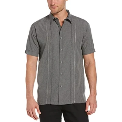 Cubavera Men's Chambray Pintuck Short Sleeve Button (Size Small 4x Big & Tall) Shirt, Steeple Gray, XXL