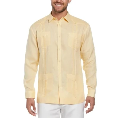 Cubavera Men's Four Pocket Mini Pintuck Long Sleeve Button Down Guayabera Shirt, Banana Crepe, XL Big Tall