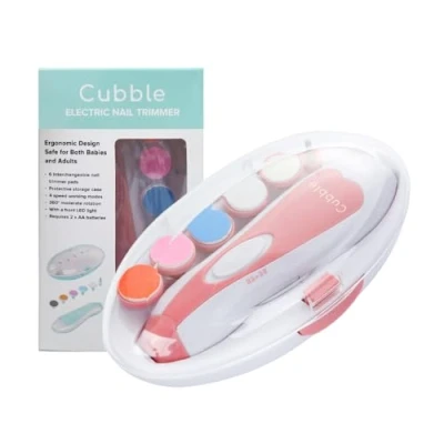 Cubble 8 in 1 Baby Safe and Quiet Electric Nail File Kit, Trimmer with LED Lights for Newborns Toddlers, 6 Grinding Pads, 4 Speed Modes (Pink)