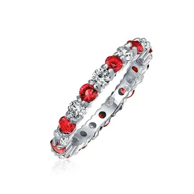 Cubic Zirconia Red White Alternating Stackable CZ Eternity Ring For Women Teen Simulated Ruby .925 Sterling Silver