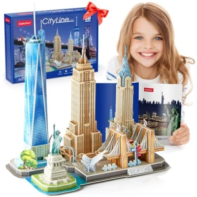 CubicFun 3D Puzzle for Kids New York City Skyline Building Model Kits, US DIY Decoration and Souvenir Gift Adults Kids, Statue of Liberty, Empire State Building, Chrysler 123 Pieces