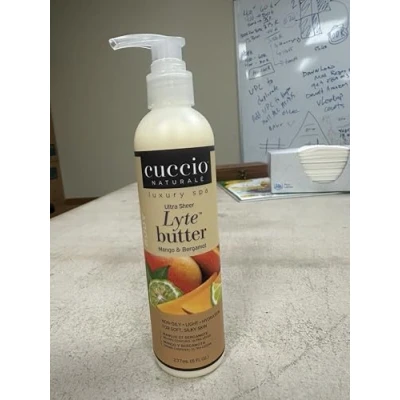 Cuccio Naturale – Mango & Bergamot Lyte Body Butter 8oz Cuccio Lyte is an ultra-sheer body butter that delivers 24 hour time released hydrating emolients to dry, damaged skin Soft to the touch, this formula’s smooth viscosity helps reduce the appearance of fine lines and wrinkles on hands, feet and body Uncover fresher feeling, more radiant looking skin with antioxidants that help refine the skin’s texture while enhancing its natural moisture for younger looking skin Infused with essential vitamins and botanical extracts to help make skin appear more vibrant, with a lovely healthy glow This fantastic, thinner viscosity lotion is great for hands, feet and body. Bergamot helps with acne flare-ups, excessively oily skin, eczema and wounds Mango is known for producing glowing skin, preventing premature aging and exfoliating the skin