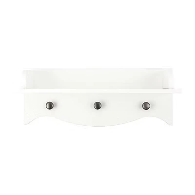 WHITE CONTEMPORARY NURSERY SHELF – A stylish yet practical addition to your little one’s bedroom with a variety of uses. 3 HANGING PEGS – This cute wall shelf features three hanging pegs that are the perfect place to showcase your baby’s outfits. VARIETY OF USES – The shelf can be used as a modern bookshelf to store your child’s favourite nursery books or as a place to display soft toys. PRODUCT MEASUREMENTS - 60 X 18 X 23CM (L x W x H). MAX WEIGHT - 8kg on shelf, 3kg per peg.