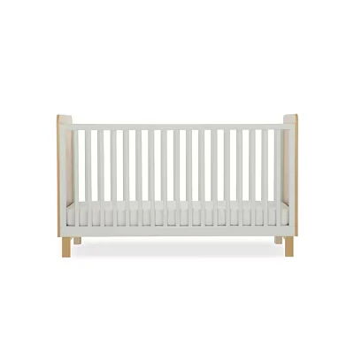 CuddleCo Remi Cot Bed Convertible Baby & for Ages 0 5 Years, Stylish and Durable Design Nursery, Adjustable Height, Safe Comfortable Sleep Solution (Oak/Green)