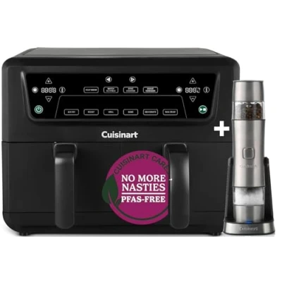 NO NASTIES, JUST DELICIOUS - Stop air frying with harmful non stick coatings and upgrade to our new PFAS free air fryer. UPGRADE YOUR AIR FRYING GAME - Two spacious 5.2L baskets let you cook 8+ portions! Perfect for family feasts, parties, or meal prep—faster, easier, and tastier. 6-IN-1 COOKING FUNCTIONS WITH AUTOMATIC KEEP WARM: Enjoy Air Fry, Roast, Grill, Bake, Dehydrate, and Max Crisp modes, with automatic keep warm functionality to ensure your food stays ready when you are — perfect for crispy fries, baked treats, and more. EFFORTLESS COOKING FEATURES: Synchronised cooking, shake reminders, adjustable heat, and a 60-minute auto-pause timer make every meal easy, seamless, and stress-free. CRISPY OUTSIDE, TENDER INSIDE: Air Advantage tech delivers the crunch you crave with little to no oil. Healthier meals? Yes, please—with all the flavour, none of the guilt! ALL-METAL MAGIC: Enjoy a fresh cooking experience with no out-of-the-box smells, and durable metal design ensures even heat distribution for perfect results QUICK CLEANUP, BIG RESULTS: Dishwasher-safe baskets and a non-stick finish make cleanup a breeze. Plus, 2400W of power means meals are done in a flash, and 3 year guarantee ensures peace of mind meal after meal., Manufacturer: Cuisinart