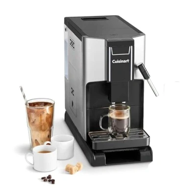 FULLY AUTOMATIC BARISTA-QUALITY COFFEE AT HOME, HOT OR COLD: Whether you’re craving a bold Espresso to kick-start your day, a smooth Americano, or a refreshing Cold Brew to cool off, this fully automatic machine delivers barista-level results with ease. RICH FLAVOUR & PROFESSIONAL RESULTS BOTH - HOT AND COLD: Enjoy bold, aromatic coffee every time with 15-bar pump pressure, stainless steel conical burr grinder with adjustable grind settings, plus pressure-based extraction instead of heat for cold brews. BUILT IN MILK FROTHER: Creates rich, luscious steamed milk or milk alternatives for creamy lattes and velvety cappuccinos, and dispenses hot water. COMPACT DESIGN WITH BIG CAPACITY: Small footprint, but still a large 1.5L water tank and 150g airtight bean hopper give you the freedom to brew multiple cups back-to-back, making it perfect for entertaining guests, sharing with family, or fueling your own busy day with minimal interruption. SAVE YOUR GO-TO DRINK SETTING: Convenient Favourite Button lets you program and save your preferred drink settings, so you can enjoy your ideal coffee, perfectly made to your liking, with a single touch FITS ANY MUG OR TRAVEL CUP: From small espresso shots to tall travel mugs, the flexible base and detachable drip tray make it simple to accommodate drinks of all shapes and sizes. EFFORTLESS COFFEE, MINIMAL CLEANUP: Automatic descaling function, plus waste container with full indicator collects used grounds for easy cleanup and a hassle-free experience., Manufacturer: Cuisinart