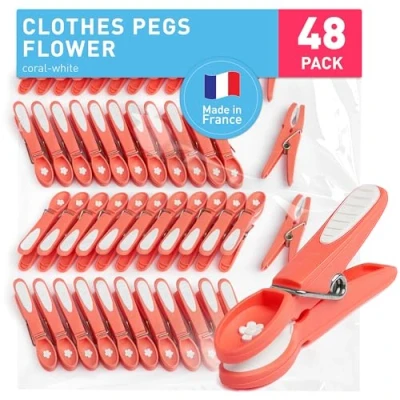culiclean Clothes Pegs for Washing Line Strong Soft Grip Flower Durable Plastic Laundry Indoor, Outdoor Use Heavy Duty Clips 48 Pack coral white