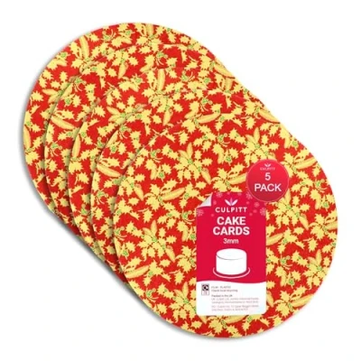 Christmas Cake Board - These 10" Round Cake Boards are perfect for any cakes and desserts this Christmas. Featuring a Christmas red background with sprigs of gold holly & green berries repeated across the foil, adding festive joy to your Christmas table and showcasing your bakes in a traditional seasonal style! 5 Pack of Cake Cards - Bulk pack of 5 double thick cards, ideal for regular cake makers, bake sales, or if you're planning on making and gifting sweet treats to family and friends this Christmas! Lightweight - Double thick cake cards are 3mm thick and perfect for lighter sponge cakes and yule logs or for displaying Christmas themed cupcakes, chocolates, and brownies this holiday season. Fern embossed aluminium foil on the top and sides with a white paper lined base. Festive Design - Each red cake board features a gold holly sprig and green berry pattern on a coloured background. Pack of 5 Chrismas Cake Boards made in the UK Cake Boards from a Leader in Cake Decorating - Culpitt Christmas Cake Boards are just one of the many quality products in the Culpitt range. Professional cake decorators and bakers worldwide rely on Culpitt for all their cake decorating needs., Weight: 1.2786811196 Pounds, Manufacturer: Culpitt Ltd