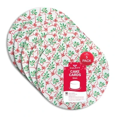 Christmas Cake Board - These 10" Round Cake Boards are perfect for any cakes and desserts this Christmas. Featuring a silver cake card with sprigs of green holly & red bows repeated across the foil, adding festive joy to your Christmas table and showcasing your bakes in a traditional seasonal style! 5 Pack of Cake Cards - Bulk pack of 5 double thick cards, ideal for regular cake makers, bake sales, or if you're planning on making and gifting sweet treats to family and friends this Christmas! Lightweight - Double thick cake cards are 3mm thick and perfect for lighter sponge cakes and yule logs or for displaying Christmas themed cupcakes, chocolates, and brownies this holiday season. Fern embossed aluminium foil on the top and sides with a white paper lined base. Festive Design - Each silver cake card features a red bow pattern with green holly sprigs on a coloured background. Pack of 5 Chrismas Cake Boards made in the UK Cake Boards from a Leader in Cake Decorating - Culpitt Christmas Cake Boards are just one of the many quality products in the Culpitt range. Professional cake decorators and bakers worldwide rely on Culpitt for all their cake decorating needs., Weight: 1.2786811196 pounds, Manufacturer: Culpitt Ltd