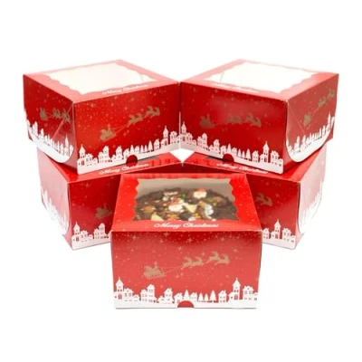 CHRISTMAS CUPCAKE BOXES - 5 Christmas Cupcake Boxes featuring a classic nordic winter scene, Santa in his Sleigh, and gold stars together with "Merry Christmas" motto. Sure to enhance the look of your Christmas fruit cakes, muffins, cupcakes or cookies this holiday season. CHRISTMAS DISPLAY BOX - Each box includes a see through window on the top and sides so you can proudly display your creation without risking damage. Perfect for travelling to festive family events, Christmas bake sales, stores, and storage. STRONG - The pre-folded box is strong and supportive once constructed. Rigid and reliable packaging and protection so you can be confident in transporting your Christmas cakes, chocolate logs, and other sweet treats! EASY TO ASSEMBLE - Each red and gold cake box is delivered flat and shrink wrapped for hygiene and easy storage but is very easy to assemble meaning you will be ready to transport your cake in seconds. Made with food-grade card. 5 PACK - A 5 pack of Christmas gift boxes is great for regular bakers and anyone getting ready for Christmas. Shrink wrapped for hygiene. 250mm x 152mm, Weight: 0.75 Kilograms, Manufacturer: Culpitt