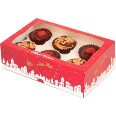 CHRISTMAS CUPCAKE BOXES - 5 Christmas Cupcake Boxes featuring a classic nordic winter scene, Santa in his Sleigh, and gold stars together with "Merry Christmas" motto. Sure to enhance the look of your decorative mini-cakes, muffins, cupcakes or cookies this holiday season. CHRISTMAS DISPLAY BOX - Each box includes a see through window on the top and sides so you can proudly display your creation without risking damage. Perfect for travelling to festive family events, Christmas bake sales, stores, and storage. 6 HOLE CUPCAKE BOX - The pre-folded box is strong and supportive once constructed. Rigid and reliable packaging and protection so you can be confident in transporting your Christmas fairy cakes, muffins, and cupcakes! EASY TO ASSEMBLE - Each red and gold cake box is delivered flat and shrink wrapped for hygiene and easy storage but is very easy to assemble meaning you will be ready to transport your cake in seconds. Made with food-grade card. 5 PACK - A 5 pack of Christmas gift boxes is great for regular bakers and anyone getting ready for Christmas. Shrink wrapped for hygiene. 3" Deep, Weight: 0.771617917 pounds, Manufacturer: Culpitt