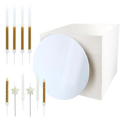 GOLD CAKE SET - Celebrate that special birthday or anniversary in style with this Gold Sparkle birthday cake set. Perfect for birthday's this pack contains 1 x white cake board, 10 x gold sparkle cake candles, and 1 x tall cake box. TALL WHITE CAKE BOX – The cake box with lid is perfect for keeping your freshly baked cakes free from damage. The box is plain white, windowless and 10 inches high so ideal for all stacked cakes or if you need to decorate the cake with toppers and candles before transporting it to the special event. EXTRA STRONG CAKE BOARD – Masonite cake boards are incredibly strong for their 4mm thickness and are a great choice for all types of cakes from lighter sponges to dense fruit cakes and is the best cake board to support heavier cakes and multi-tier cakes. This masonite cake board features a gloss white finish that is perfect for displaying all kinds of celebration cakes. GOLD CANDLES - Celebrate that special birthday or anniversary in style with these Gold Sparkle birthday cake candles. 10 piece Gold & White party set includes 4 x Tall candles in white and gold, 2 x Spiral candles in gold, 2 x Glitter candles, and 2 x Glitter Star shaped candles. Each with food-safe pics for placing directly on top of the cake. READY TO USE CAKE DECORATION KIT - Use these Gold glitter candles for cake to instantly add height and interest to any home made or store bought cake. Pair with other gold themed party decorations, table decorations, or cake decorations and toppers., Weight: 0.9038952742 pounds, Manufacturer: Culpitt
