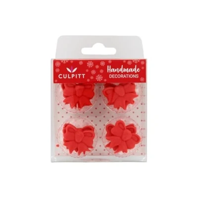 Culpitt Red Bow Sugar Pipings, Edible Royal Icing Decorations, Festive Christmas Ribbon Cake and Cupcake Toppers Pack of 12