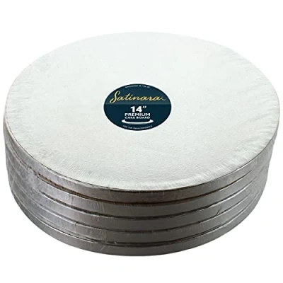 Culpitt Satinara Cake Boards, 14" Drums, Silver Foil Covered, 12mm Thick 14 Inch Round (Pack of 5), 88379