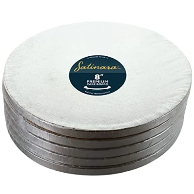 TOP QUALITY: This is a top quality 10mm thick cake drum which is handmade in the UK. You can rely on the best possible finish on the silver foil turned edge which will beautifully display any celebration cake. Also known as a cake drum. 5 PACK: This pack contains 5 x 8 inch round cake boards/drums with an attractive silver foil finish. The cake boards inside this pack are not individually wrapped. STURDY: The Satinara cake board is a great choice for all types of cakes from sponges to dense fruit cakes and is the best cake board to support heavier cakes and multi-tier cakes. These strong cake boards are perfect for everyday baking to more elaborate celebration cakes. RE-USEABLE: Covered in silver foil, the Satinara cake board can be re-used over and over again after cleaning. Due to its thickness, if preferred the Satinara cake board may be covered in sugar paste depending on your cake design, or applying a pretty ribbon around the edge of the board is a popular method of decorating your cake drum. SUITABLE FOR ALL OCCASSIONS: A silver cake board is suitable for birthdays, anniversaries, parties weddings and all celebrations. A multipack of 5 cake boards is an ideal choice for regular cake makers and decorators., Weight: 1.2566348934 pounds, Manufacturer: Culpitt