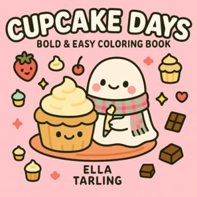 Cupcake Days Bold & Easy Coloring Book: 40 Simple Cute Designs for Kids Adults Cozy Kawaii Food Fun (Cozy Collection Books Adults)