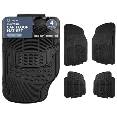 CUQOO 4 Piece Universal Rubber Car Mats Heavy Duty, Non Slip All Weather for Cars, SUVs, Trucks & Vans Waterproof, Easy to Clean, with Deep Grooved Design Extra Durability