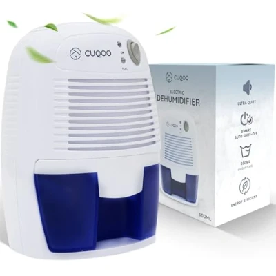 CUQOO 500ml Electric Dehumidifier with Ultra Quiet, Energy Efficient Technology Auto Shut Off Safety Portable Damp Absorber for Mould & Moisture Ideal Home, Office, Caravan, RV