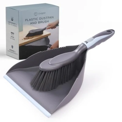 CUQOO Plastic Dustpan and Brush Set Compact Hand Dust Pan for Home Cleaning with Easy Grip Handle, Firm Bristles Corrugated Edge