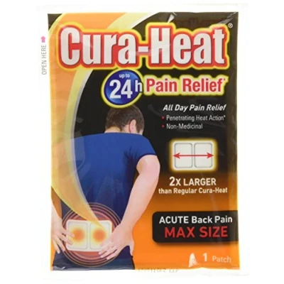Long lasting. Up to 24 Hours pain relief Air-activated heat patch for targeted warming relief from back pain 2 x larger than regular Cura-Heat patches Non-medicinal and Ready to use It increases blood circulation and relieves sore and stiff muscles