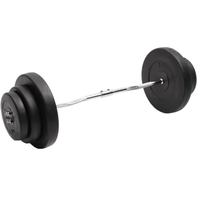 General description This versatile barbell with plates set is a perfect choice for those looking for varied workout options. Made of chrome plated steel, the barbell is sturdy and stable. The barbell plates are made of cement and covered with robust, floor-friendly plastic, minimizing annoying clanging sounds during workouts. The multifunctional barbell set is suitable for training your chest, biceps, arms, triceps, and back muscles. Technical specifications Colour: Black Material: Chrome plated steel, cement with plastic covering Total weight: 60 kg Barbell weight: 5 kg Barbell bar dimensions: 25 mm x 120 cm (Diameter x Length) Bar maximum load capacity (120 cm): 120 kg Plate weights: 2 x 5 kg, 2 x 7.5 kg, 2 x 15 kg Diameter of 15 kg plates: 39 cm Diameter of 7.5 kg plates: 30 cm Diameter of 5 kg plates: 25 cm Hole diameter: 26.5 mm Installation Each product comes with an assembly manual in the box for easy assembly. Usage The different weight sets allow for a suitable combination to