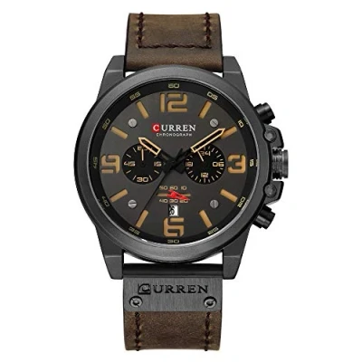 CURREN Luxury Brand Men Military Stopwatch Waterproof Leather Chronograph Watch Mens Fashion Quartz (Coffee Color), Coffee color, Chronograph,Quartz