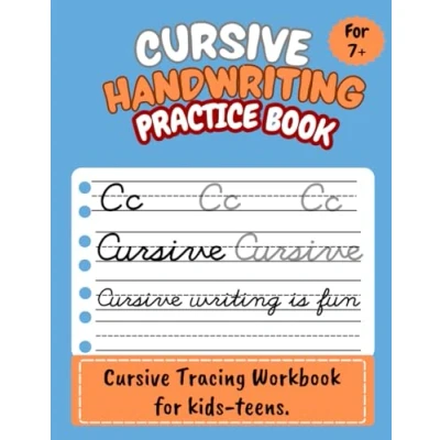 Cursive Handwriting Practice Book for Ages 7+. Tracing Workbook kids teens.