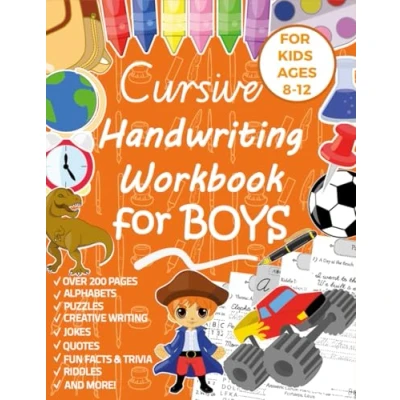 Cursive Handwriting Workbook for Boys Ages 8 12: Fun Practice Kids, Penmanship, and Script Writing beginners with Jokes, Puzzles, Riddles