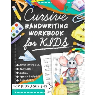 Cursive Handwriting Workbook for Kids Ages 8 12 with Jokes & Riddles: Penmanship Practice Paper and Script Writing Book Beginners