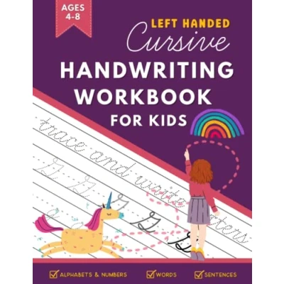 Cursive Handwriting Workbook for Kids Left Handed: Letter Tracing Writing Book Beginners To Write Alphabets Numbers Words and Sentences