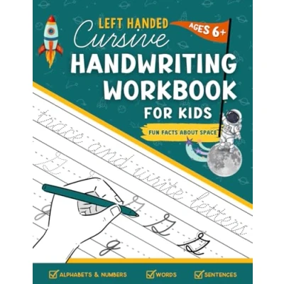 Cursive Handwriting Workbook for Kids Left Handed: Practice Writing Book Beginners to Trace Alphabets Numbers Words and Sentences