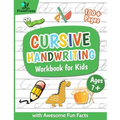 Cursive Handwriting Workbook for Kids with Awesome Fun Facts: Step by Writing Ages 7+: Practice Letters, Words, Numbers, and Sentences Tracing Activities