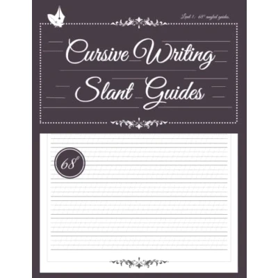 Cursive Writing Slant Guides, Level 1 68 degrees: Blank Template Guides for Beginners to Practice Alphabet Letters, ... Grid on 4 line Handwriting sheets